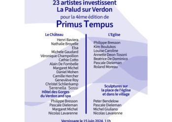 Vernissage le samedi 15 juin 2024,11h Château et Église de La Palud sur Verdon, Hôtel des Gorges du Verdon, PRIMUS TEMPUS IV du 15 juin au 31 août 2024 Pierre Gil Flory et son équipe